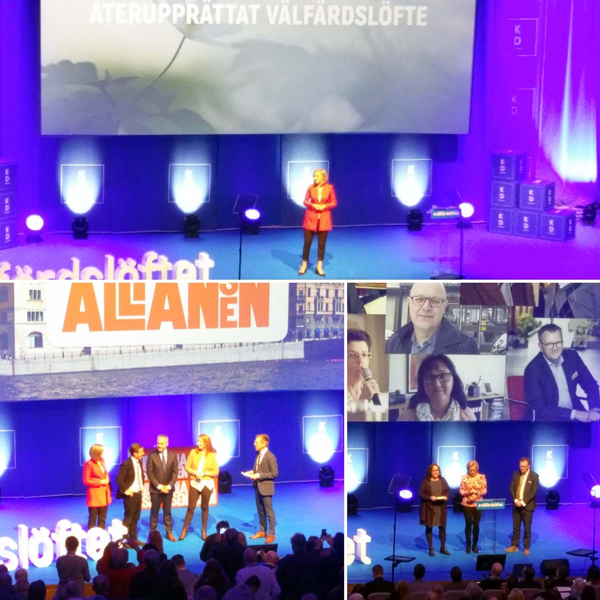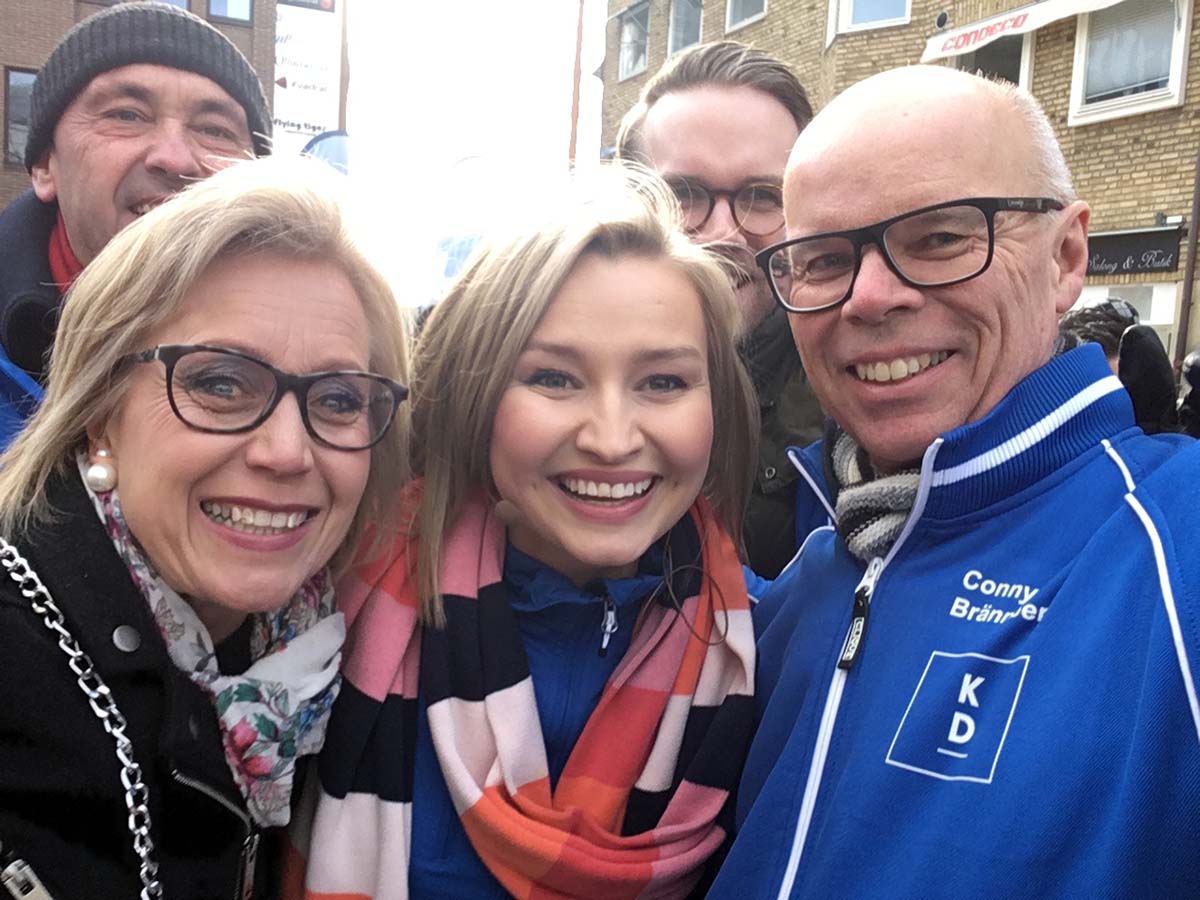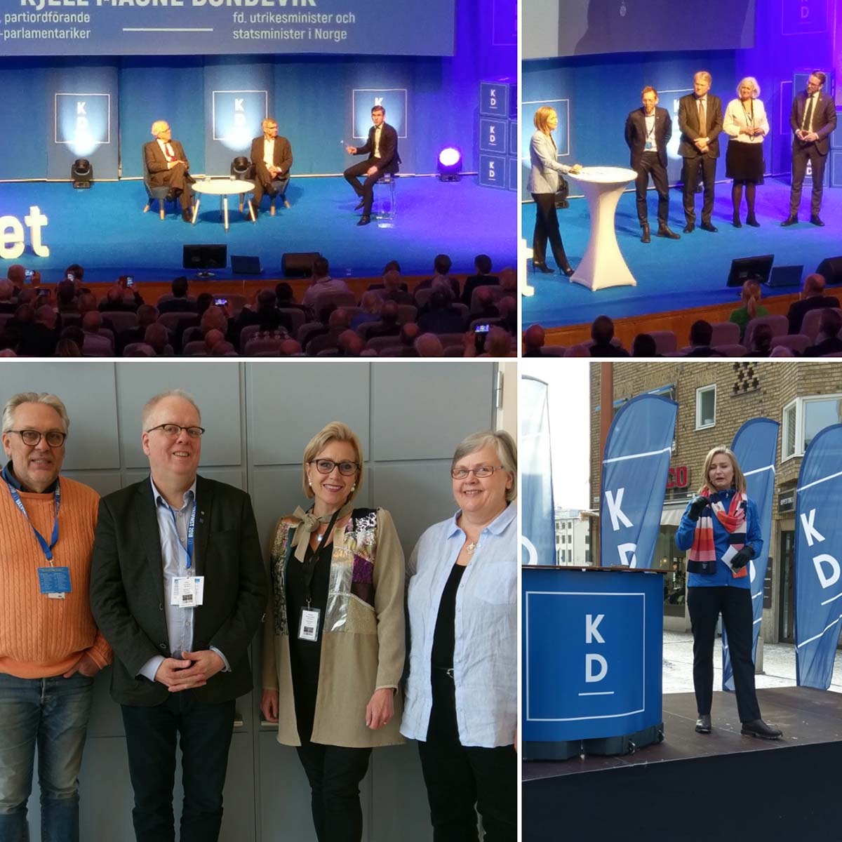 - Dag två på KD-dagarna började fantastiskt bra med att Markus Jonsson initierat intervjuade två av den skandinaviska kristdemokratins giganter – Alf Svensson och Kjell Magne Bondevik. De har båda varit med om att vända till synes hopplösa opinionslägen till jordskredssegrar i valet. Räkna aldrig ut ett gäng taggade kristdemokrater i förväg! Ebba Busch Thor presenterade partiets frontpersoner inom de viktigaste politikområdena inför valet. Stolta konstaterar vi att fyra av de fem har sina rötter i vårt partidistrikt. Som avslutning på detta inspirerande dygn fick vi höra henne hålla sitt första valtal i årets valrörelse – snacka om en bra start på valrörelsen! Over and out från Arnold Carlzon, Håkan Johansson, Camilla Rinaldo Miller, Lena Freij och Torbjörn Eriksson – nuuuuu kööör vi! (Foto: Håkan Johansson)