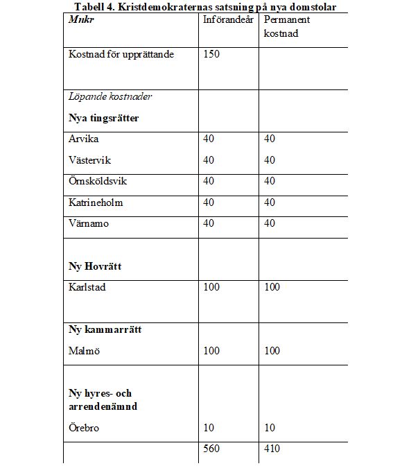 - Tabell 4: Kristdemokraternas satsning på nya domstolar