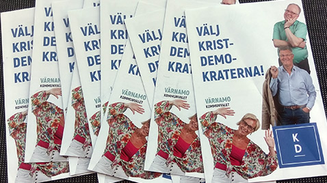 - Kristdemokraternas valfolder i Värnamo. (Foto: Håkan Johansson)