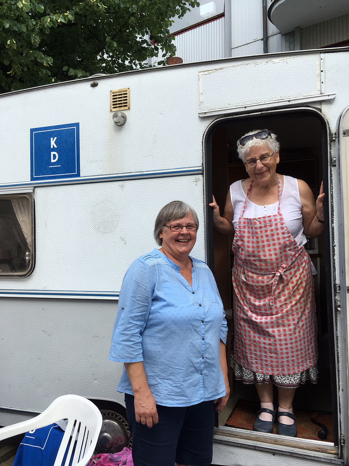 - Lena Freij och Ingegerd Rubensson serverade våfflor och kaffe till alla marknadsbesökare som ville ha. (Foto: Camilla Rinaldo Miller)