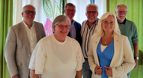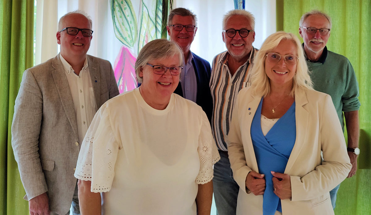 - Håkan Johansson, Lena Freij, Stig Claesson, Arnold Carlzon, Camilla Rinalde Miller och Gunnar Crona under en paus i Kommunfullmäktigemötet. (Foto: Agnes Johansson)