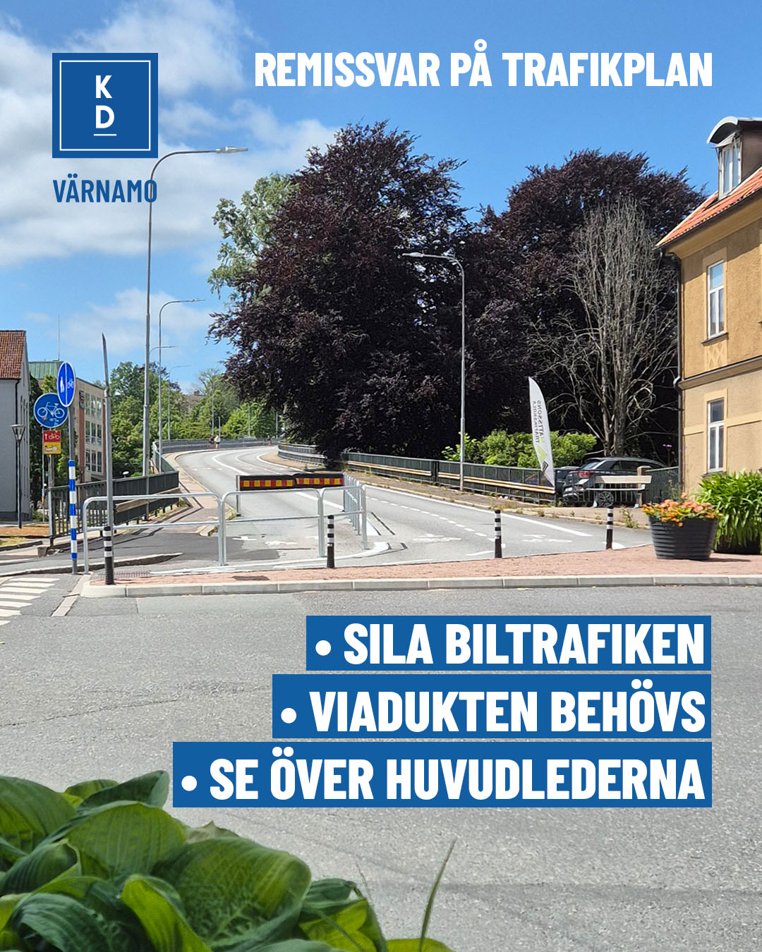 - Kristdemokraternas remissvar på Trafikplan för Värnamo kommun: 1. Sila biltrafiken, 2. Viadukten behövs, 3. Se över huvudlederna.